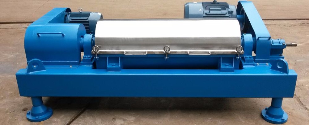 Separation takes place in a horizontal cylindrical bowl equipped with a scroll conveyor. The processing material is fed into the bowl through a stationery inlet tube and is smoothly accelerated in the accelerate chamber. Centrifugal forces cause instant sedimentation of the solids on the wall of the bowl. The conveyor rotates in the same direction as the bowl, but at a different speed, thus moving the solids towards the conical end of the bowl.