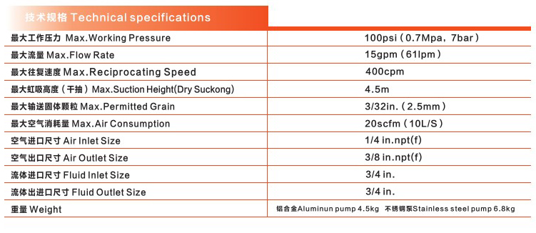| Max. suction height(dry suckong)(m) | 4.5 |