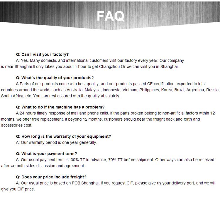 1. Provide clients one-year warranty to make sure the machine work well;