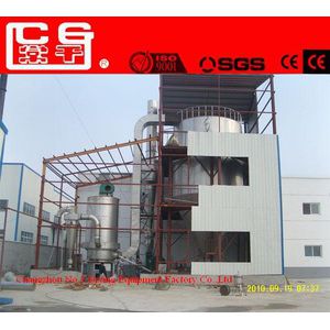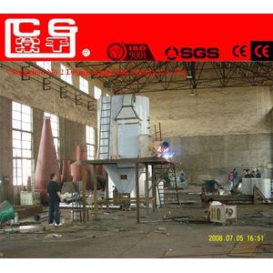After been filtered and heated the air enters into the air distributor on the top of the dryer. The hot air enters into the drying room in the spiral form uniformly. Passing through the high-speed centrifugal sprayer on the top of the tower, the material liquid will rotate and be sprayed into the extremely fine mist liquid beads. Through very short time of contacting the heat air, the materials can be dried into the final products. The final products will be discharged continuously from the bottom of the drying tower and from the cyclones. The waste gas will be discharged from blower.