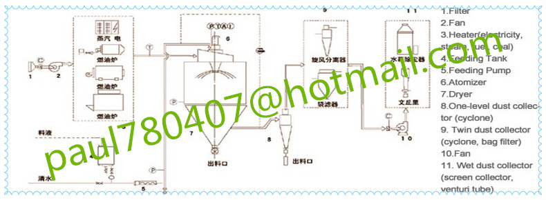 Spray dryer drying is the technology most widely used in the liquid technology shaping and in the drying industry. The drying technology is most suitable for producing solid powder or particle products from liquid materials, such as: solution, emulsion, suspension and pumpable paste states ,For this reason, when the particle size and distribution of the final products, residual water contents, mass density and the particle shape must meet the precise standard, spray dryer drying is one of the most desired technologies.