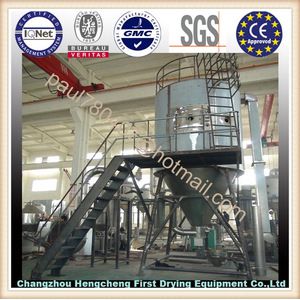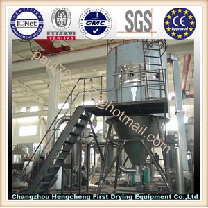 High Speed Centrifugal Spray Dryer Series of LPG is gas-liquid co-current flow drying equipment, using high-speed centrifugal atomizer, the liquid will be atomized into fine droplets, then mix with the hot air from the distributor in the dryer, heat and mass transfer exchanges rapidly during the mixing process. In a very short period of time the liquid become dry powdered products. Production control and product quality control is convenient and reliable. It is widely used in the drying production of different types of liquids materials.