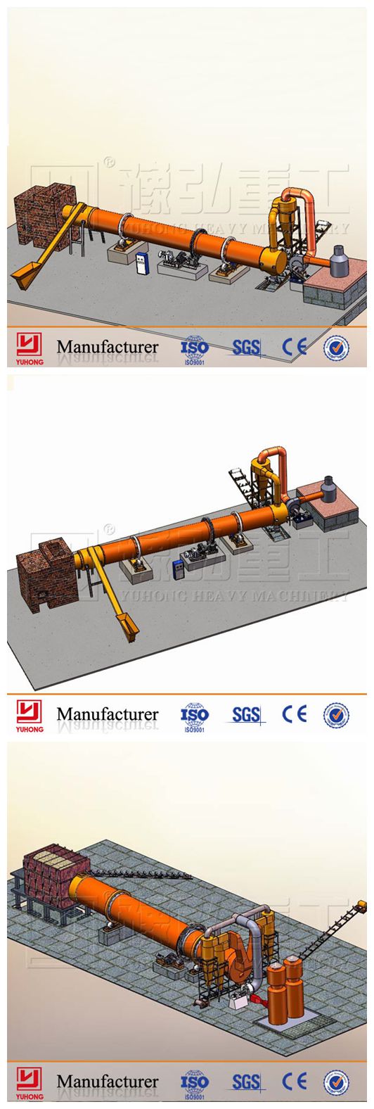 Our henan YUHONG heavy machinery co., ltd. (YUHONG FROUP) have rich experiences in designing and producing the rotary dryer for more than 20 years. Our YUHONG rotary dryer sales all over the country as well as we are expanding the rotary dryer overseas market. We hope to help more rotary dryer users to get strong quality rotary dryer with the reasonable price. Our YUHONG heavy machinery co., ltd. has the whole manufacturing machine to producing the rotary dryer, the pictures below are our workshope rolling steel plate pictures then to produce the rotary dryer's shell. We mainly have sawdust(wood chips) drying rotary dryer client's working site, sand drying rotary dryer client's working site, metal filing(sweepings) drying rotary dryer client's working site, slag(clay) drying rotary dryer client's working site, pomace( fruit residues) drying rotary dryer client's working site, poultry manure(high humidity) drying rotary dryer client's working site, etc. Our YUHONG heavy machinery co., ltd has a professional rotary dryer technical team of 10 engineers. We hope we can help more persons to solve the drying system problems all the time. We are sincere to invite you to visit our company and communicate more with us.