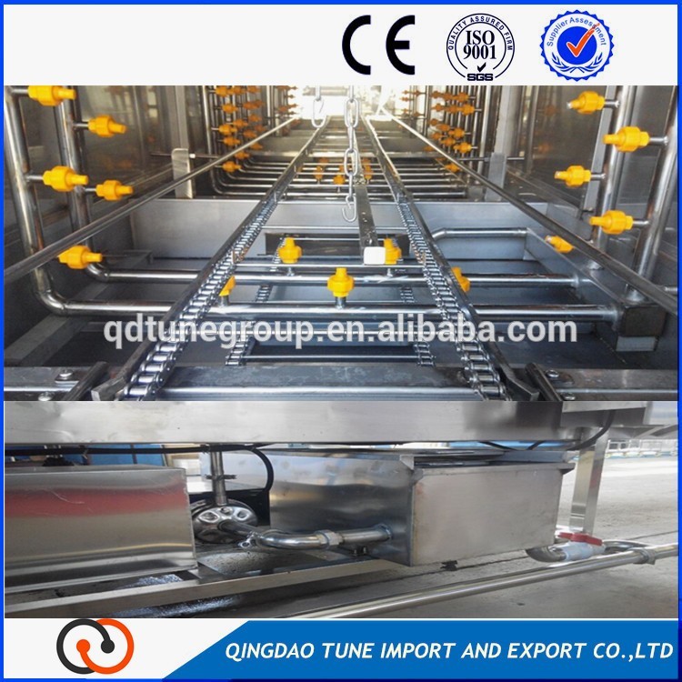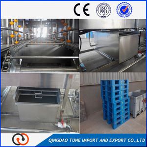 2:How it works: After the unit is turned on, feeding by hand fed to spray cleaning machine chain track, the first hot lye shower and hot water spray, then spray water cycle, each group has a separate circulating water tank, filters using intensive memory material can be easily extracted drained, and easy to store a large number of the filtrate.