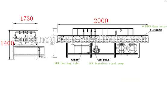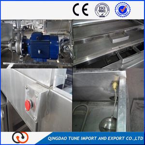 2:How it works: After the unit is turned on, feeding by hand fed to spray cleaning machine chain track, the first hot lye shower and hot water spray, then spray water cycle, each group has a separate circulating water tank, filters using intensive memory material can be easily extracted drained, and easy to store a large number of the filtrate.