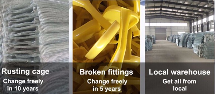 Change broken fittings for you freely in 5 years Change rusting cage for you freely in 10 years Get all from local warehouse directly |