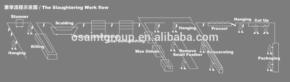 Poultry slaughtering processingline refers to a kind of meat food machine which is used to slaughter cattle,sheep, chickens, ducks and other poultry.