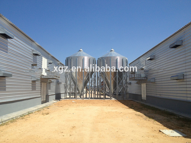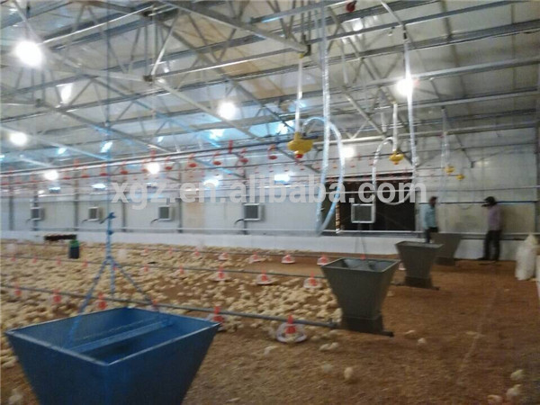 It is new section poultry house of designing for Angola. It has good ventilator. Keeping warm. Assemble quickly. Frame is galvanized steel beam and roof and wall steel sheet put to use galvanized aluminnum zinc plating sheet. It increase using longlife and anti-corrosion.