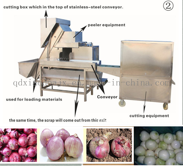 1. The cutting machine can be used to cut onions with different size, humidity,variety. It can finish root cutting completely.