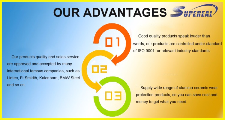 Zibo Supereal Industrial Co., Ltd, located in Zhangdian Economic Development Zone in Zibo city is focusing on high alumina ceramic products ( such as high alumina ceramic plates, rubber backed ceramic plates, wear resistant alumina tiles, abraisive protection ceramic lined pipe, and so on), here you can realize an one-stop shopping for complete wear and erosion protection solutions in wide range of industries including Power Sector, Mining, Cement, Metallurgy, Coal Washing, Steel& Iron Plant, Railway, Port and so on.