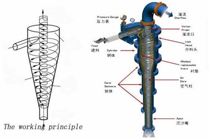 Hydraulic cyclone has no moving parts, simple structure; large production capacity per unit volume, accounting for a small area; classification of high efficiency (up to 80% ~ 90%), fine grain size classification; low cost, and less material consumption. India copper mining used hydraulic hydro cyclone separator