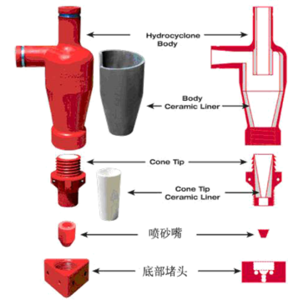2. AJCNQ series hydrocyclone desilter cone includes 4” and 5”and it mainly separates 12~47μm solid.