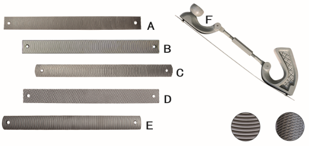 The holder has a comfortable two-handed grip for good control. Includes a holder and flexible 12" double-sided file. Replacement flexible files available separately.