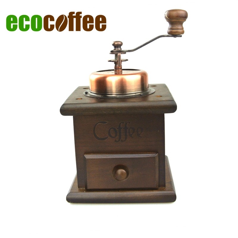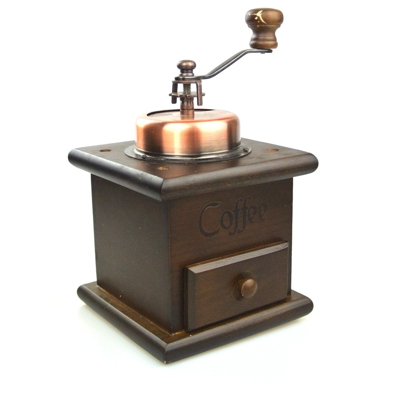 New Retro design Mini Manual Coffee Mill Wood Stand Bowl Antique Hand Coffee Bean Grind