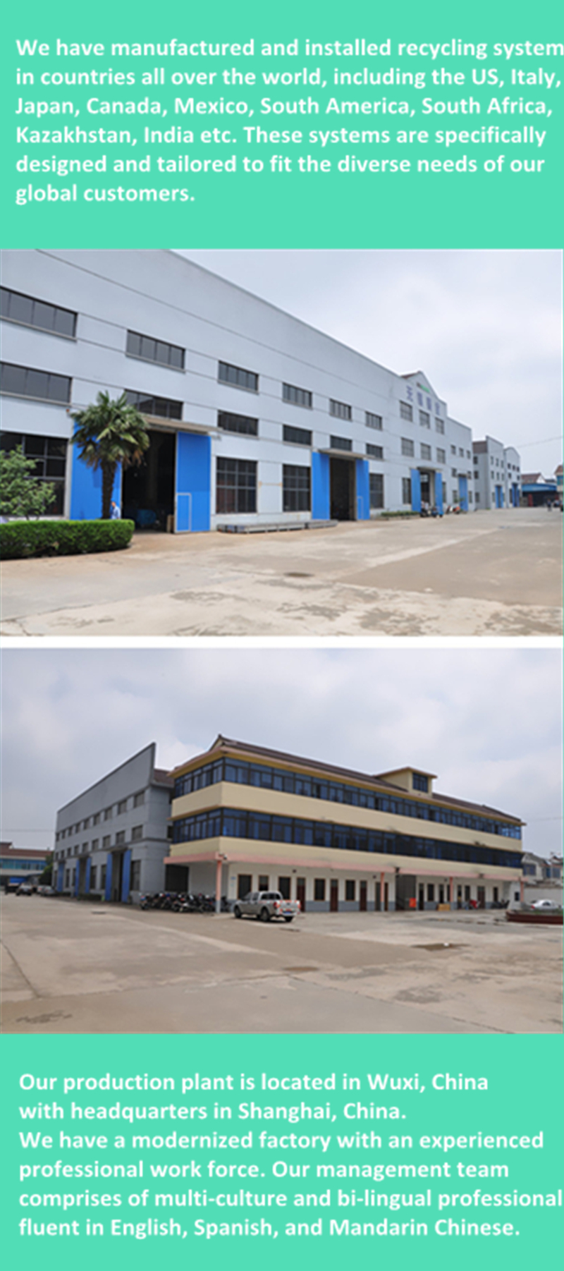 We have manufactured and installed recycling systems in countries all over the world, including USA(Miami), Italy, Japan, Canada, Mexico, South America, South Africa, Kazakhstan, India, Venezuela, Ecuador, Bolivia, Peru, Chile, Argentina, Columbia etc.
