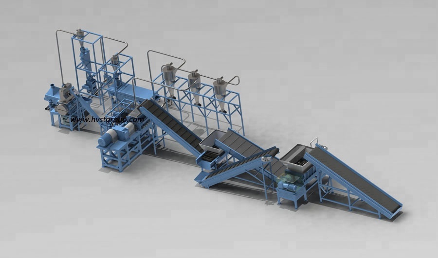 The whole plant including the TIRE SHREDDER -- RASPER -- GRANULATOR -- FIBER SEPARATOR -- DUST REMOVER -- WATER COOLING SYSTEM.