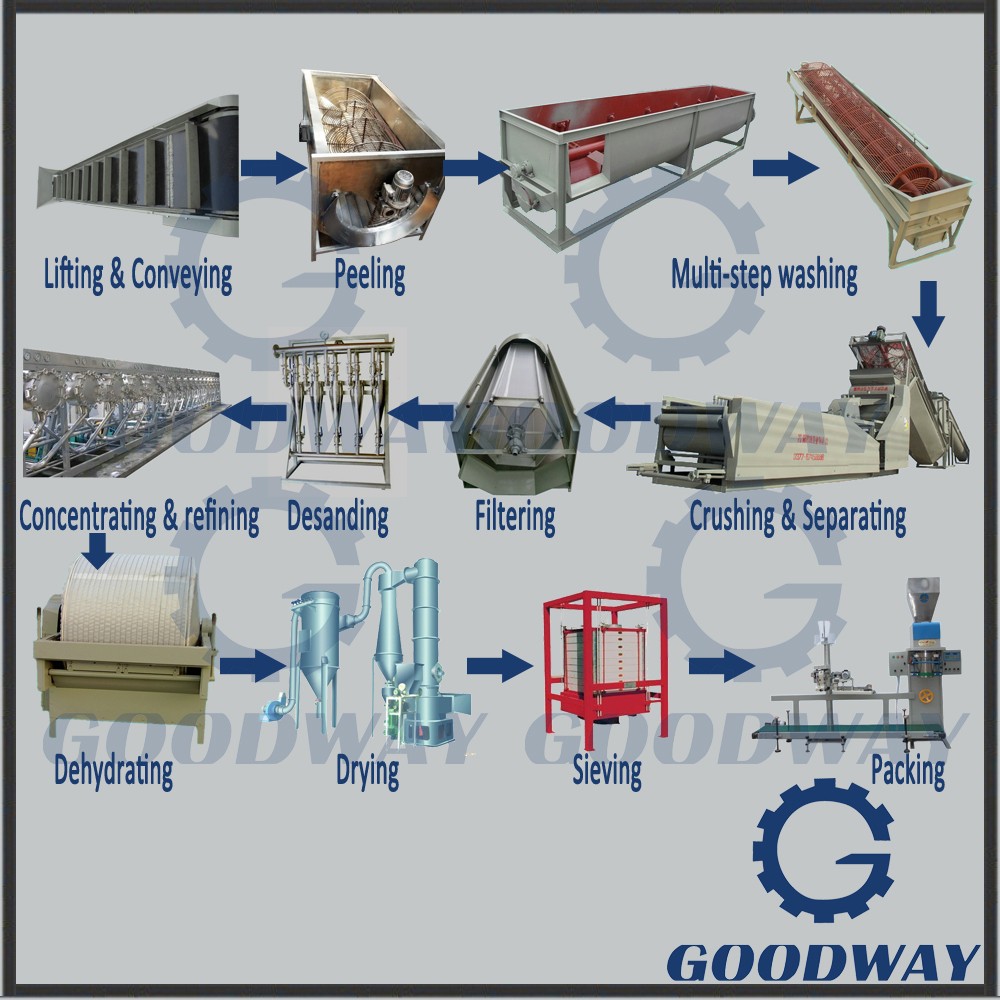4. Dry powder collected from the collector, but tailings are collected by another end to make sure completely collection. 5. Starch powder needs to be screened again to make sure no leaves or other things got in.
