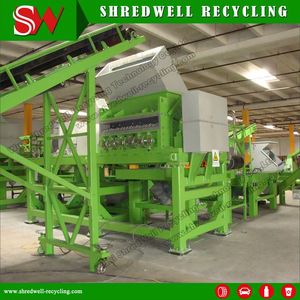 Shredwell TS series tire shredder is designed with low speed, high torque technologies to shred passenger tires, car tires, truck, super single, farm implement and OTR tires into clean shreds or chips at a rate of 40 Tons per hour.