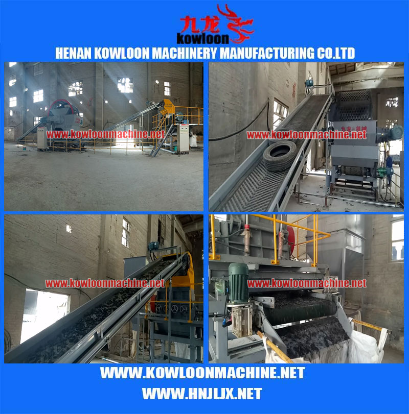 Waste tire recycling machinery: tire recycling plant, industrial two shaft shredder, tire roller mill multi-purpose rasper, rubber granulator, rubber powder machine, tire cutting machine, tire steel debeader, and fiber separate machine.