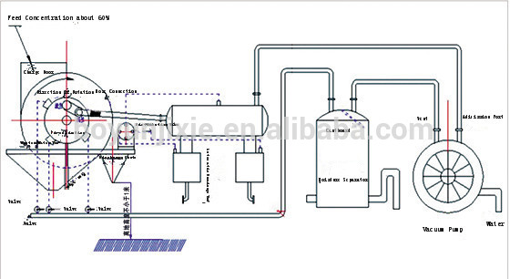 This machine is vacuum permanent magnet filter which is feeding upwards, filtering outside and cylinder type. It is mainly suitable for dehydration of the relatively coarse-particles magnetic materials.