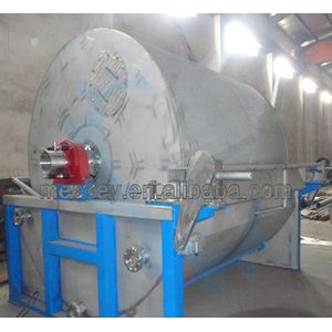 At first, on the surface of drum, a layer of pre-coat of filter aid like bergmeal or perlite should be formed evenly. Processing material is filtered into the bottom basin of the equipment. Under the function of vacuum, filter liquid goes through subsequently the pre-coat layer, filter cloth, imbibing tube, filter liquid collection pipe, and vapor liquid separator then enters into next processing section. Meanwhile the solid powder or other foreign impurities in the material is counterchecked by the pre-coat then removed by movable peeler continuously. When the thickness of the residual pre-coat is less than 10mm, it needs pre-coating again.