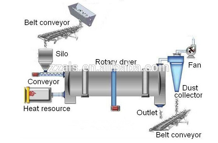 Rotary dryer is mainly used to drying the humidity and granules of fertilizer in manufacture of compound fertilizers. Meanwhile, it also can widely apply to drying many other various materials.