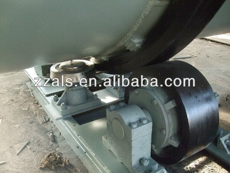 1)--Bracket parts: the whole body's rotational part is supported by bracket, more stress. So the machine bracket part adopts medium carbon steel plate, channel steel welded together, and through strict quality control and specific process requirements, to achieve the purpose of this machine is used. In addition more important is fixed to the wheel on the shelf, because of considering the body rolling belt will produce larger friction, I made a special trip for high-quality anti-corrosion, wear-resistant materials, greatly improving the service life of the machine, roller frame also USES casting technology, integrated welding of trouble from the past, the other four corners in the brackets with hoisting steel, in order to loading and unloading of transport.