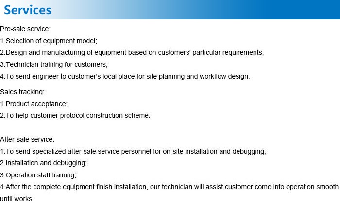 | A: Yes. We can send professional engineers to the working site for equipment installation, adjustment, and operation training. All of our engineers have passports. |