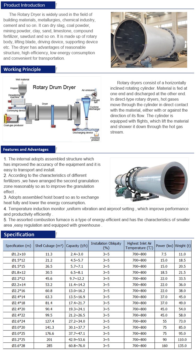 Professional rotary drum dryer for cement, coal, wood, sand, ore, sawdust