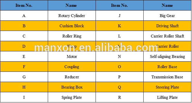 Heating source available: Coal, Oil, Natural Gas, Biomass Fuel, Waste heat, etc. Various drive assemblies available: Chain & Sprocket, Girth & Pinion Gear, etc.