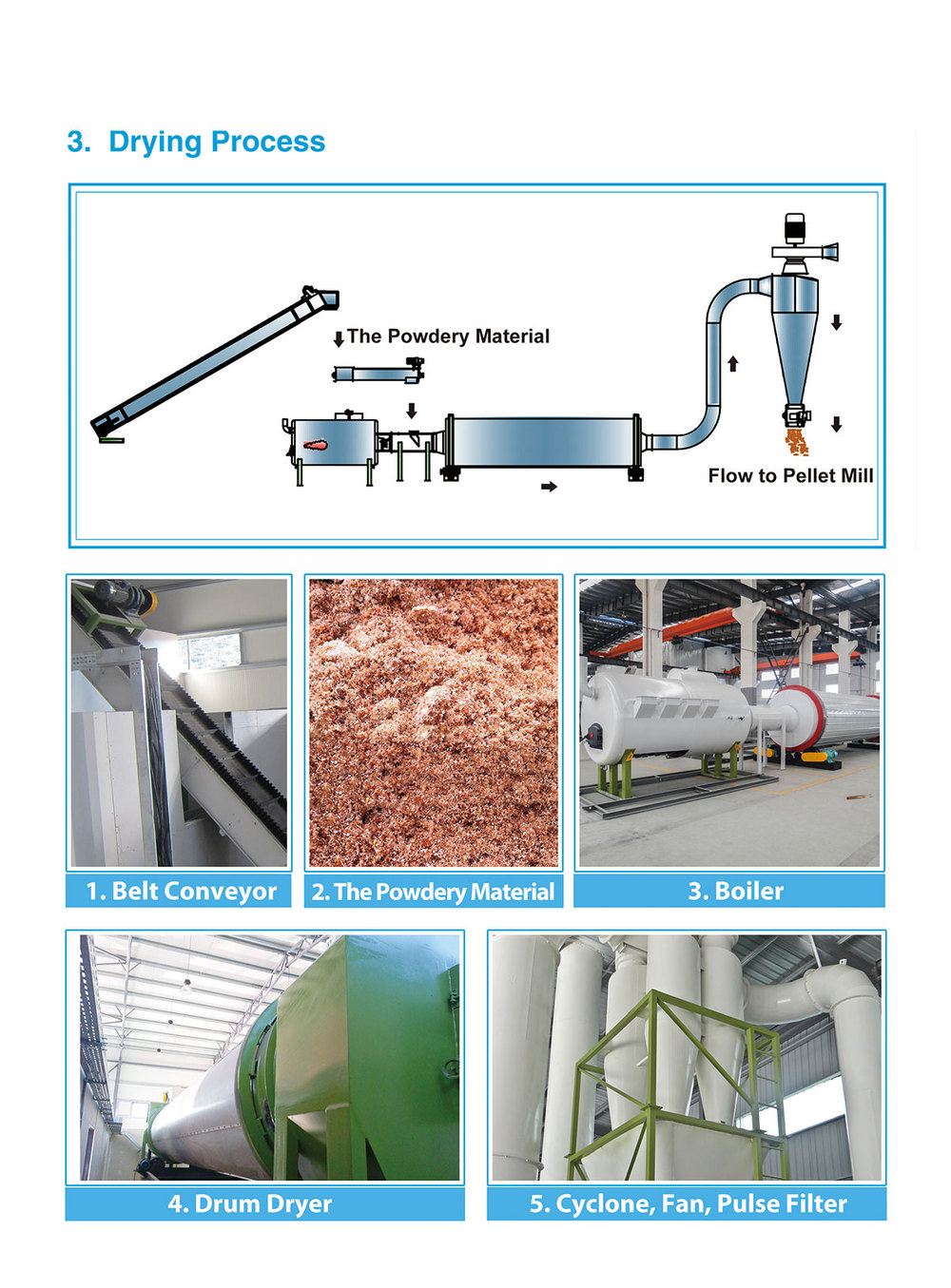 It can dry material by evaporation and heat exchange with the Boiler. Inlet air temperature of dryer is regulated by thermo-sensor. The inlet temperature is around 500-600℃.