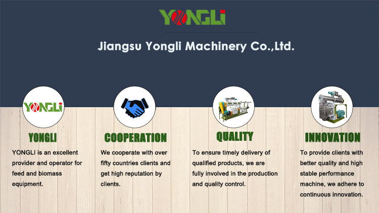 Jiangsu YONGLI Machinery Co.,Ltd. was established in year 2003 with an occupation of 22,000 s.m, located in Jiangsu, China. YONGLI is an excellent provider and operator for feed and biomass equipments. YONGLI is specialized in the design, fabrication and installation of High-end Feed mill projects and wood biomass pellet projects which closely connected with the pellet mill, hammer mill, mixer, drum dryer, wood chipper, packing machine, feed mill, fish feed extruder, cooler, conveyors, bucket elevator etc. YONGLI insist on “Quality is the soul of company", and passed the audit of ISO9001 quality system and all finished products meet the CE standard.