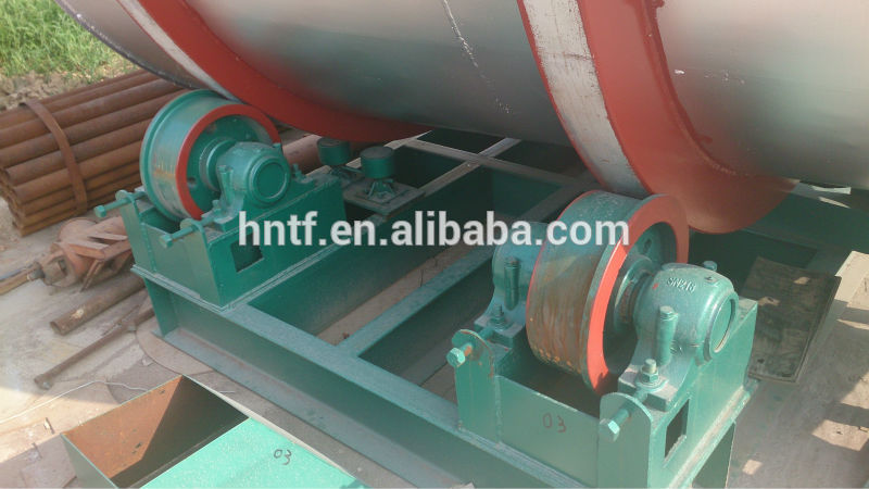 The heat source of drum rotary dryer comes from the combustion train, and adopts down-flow heating methods. When the materials enter into the body from feeding device, it will be pushed back by the spire raising board. As the dryer is in an inclined position, the materials will be down to the lower end under the influence of gravity and rotation, but the raising board will be threw to the upper end for scattering. This process make the material well-distributed in the body, then ensure the heat exchanged by heat wind. After repeated cycle with this process, the moisture content can be dried.