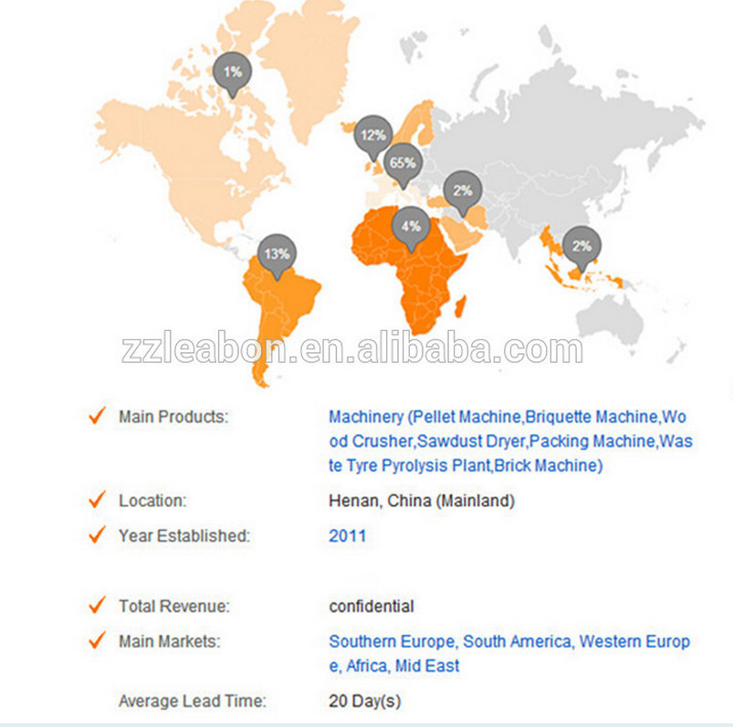 Zhengzhou Leabon Import and Export Trading Co., Ltd is professional Supplier for wood pellet machine,briquette machine, wood crusher, sawdust dryer, and Pellet making line, briquette making line.