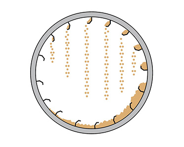 To ensure that the dryer is loaded close to optimal, it is important to know the amount of solids that can be held up in the flights. If they are underfilled, the dryer will be performing inefficiently, below its capacity. Excessive overload of the shell will result in a