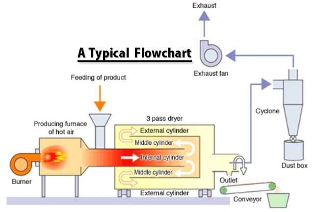 Inside the cylinder wall is equipped with lifters, whose role is to put the material lifted up and again, the contact surface is increased and the air flow of material, in order to improve the drying rate and promote the material into, before heating medium is generally divided into hot air and flue gas, heating medium by the dryer, generally need to cyclone with materials in the gas trap, for further reduce exhaust dust content, should also be after bag filter or wet precipitator put emissions.
