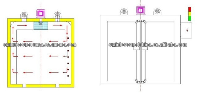 From the indide out: inner chamber(stainless steel)→ heating element(S.S304 finned tube)→insulating layer(aluminum silicate wool)→outermost shell(carbon steel/stainless steel)