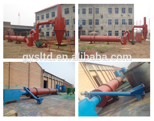 wood roatry drum dryer's material to be dried is pushed back immindiately by spiral board when enters the shell from feeding tank and feeding chute. Because the dryer is installed in slope, material flows to the back end under gravity and rotation force, meanwhile, sawdsut drying system is lifted by board repeatedly and thrown down accordingly, which make the material form even curtain, and exchange heat sufficiently with inner the heat flow.