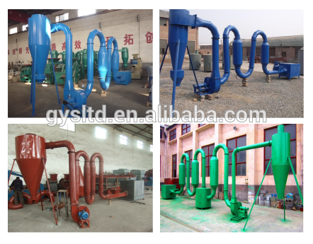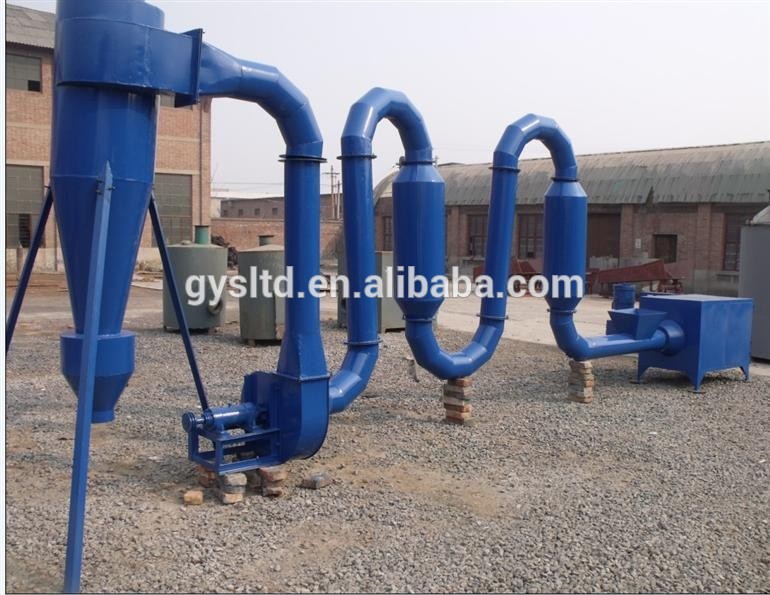 This hot airflow dryer dryer is suitable for drying materials of moisture 30~60%. The eco-friendly dryer is equipped with two fuel boilers, inlet, steel pipe, exhaust blower (fan), air lock and cyclone. Wet materials are put into the hopper. The fuel boiler generates hot air which mixes with wet materials and then is sucked into the pipes by the exhaust blower (fan) quickly. This eco-friendly dryer reduces the moisture to 8~12% with the advantages of low cost consumption and high efficiency.