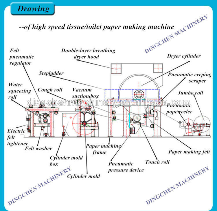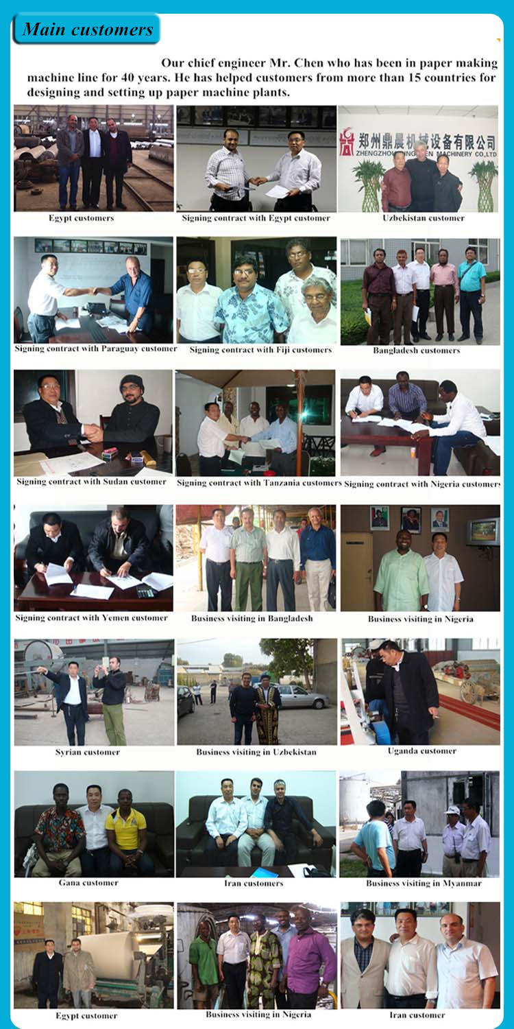 We Zhengzhou Dingchen machinery company limited has a history more than 30 years in producing pulp and paper making machines.Our products include paper making machines,pulp making machine,parts and paper converting machines such as kraft paper machines,corrugated paper machines,tissue/toilet paper machines,office paper machines, newspaper machines,and so on.Our factory gathers and trains many essential technicians and management system to ensure all products meet the quality of ISO and update constantly!