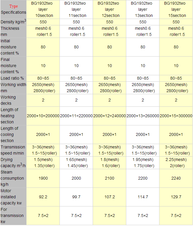 BG1932Series Compound Dryer: The upper deck is continuous mesh drying and   the middle and lower decks are roller drying .The machine requires less   investment and takes small space. It also can be changed as upper and middle   decks are continuous mesh drying, lower deck is roller drying.