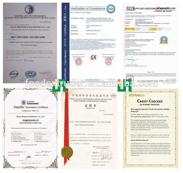 7. Process flow: (Raw material)---mixing---conveying---conditioning---extruding & puffing---conveying---drying--- (milling---packing)