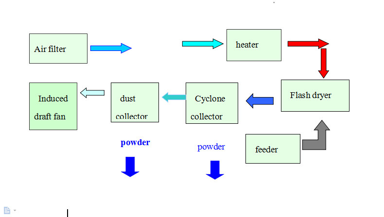 The hot air be put into the flash dryer tower from the bottom of dryer body air inlet, it will be with the high speed air flow all rise in the dryer tower ,at the same time we can adjust the annular space