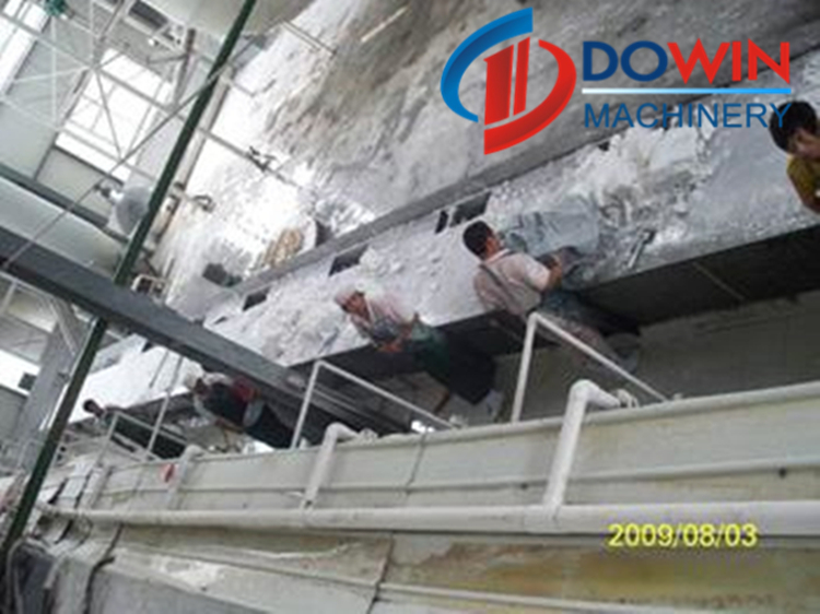 e. After shipped to the factory, the workers are sending the starch block into the drying system