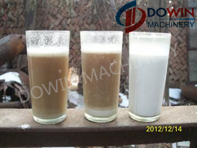 c. Separation effect is significant ( the left cup is Discharge liquid, the middle cup is Machine slurry, the right cup is refined starch milk )