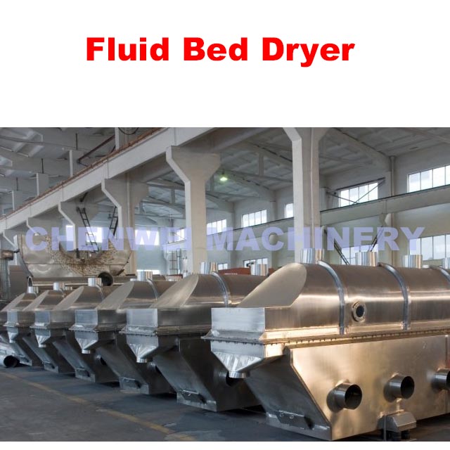 The fluid bed dryer consist of feeding device,trough,cover, vibrating motor,damping device,cyclone,blower,air filter,heat exchange,bag filter,piping,burner etc.