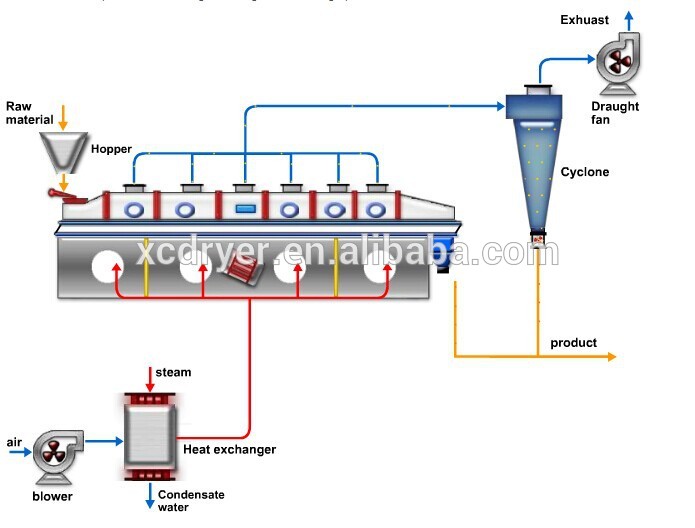vibration is added on the fluid bed. Wet material particles enter the air stream and form a fluid bed.