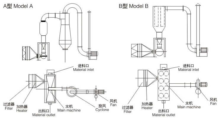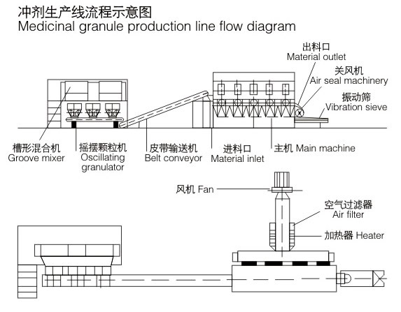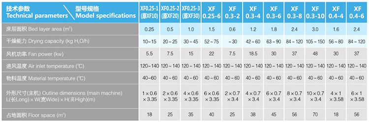 It is suitable for drying granular materials, such as pharmaceutical materials, granules for tablet pressing, medicinal granules in the pharmaceutical industry, plastic resin, citric acid, and other powder and granular materials in the chemical industry, as well as food and beverage granules, grain, maize embryo, feedstuff, etc. The maximum particle size of materials can be 6mm, and the best particle size is 0.5-3mm.