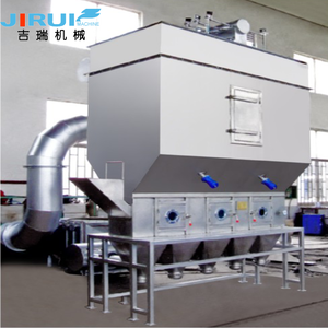 The fluid bed is composed of air filter, heater, fluid bed main machine,cyclone separator, bag dust collector, high pressure centrifugal fan,operation platform, etc. Due to different properties of materials to be dried, when equipping the dryer with dust removing devices, you can select the cyclone separator and bag dust collector, or select one of them according to the needs. Generally, you only need to select the cyclone separator for materials with relatively high specific gravity such as medicinal granules and granular materials, and select the bag dust collector for materials with relatively low specific gravity such as small granules and powder materials. The pneumatic feeding device and belt conveyor are also available for selection.