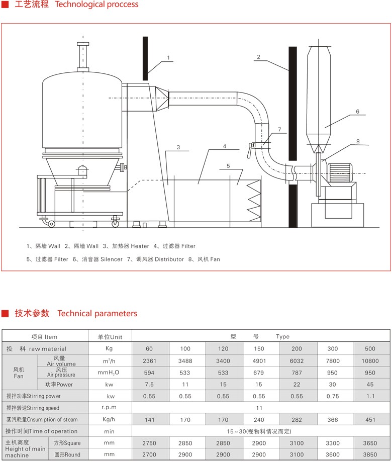 3) Adopting multi-fluid nozzle, it gurantees that the formed granule is uniform and the content of powder is very low.
